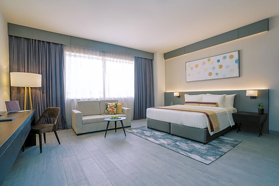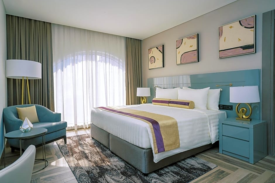 Step inside to find a world of amenities designed for relaxation and adventure. Whether you’re soaking up the sun by the outdoor swimming pool, rejuvenating at the spa, or exploring Dubai with the hotel’s shuttle service, there's always something to enjoy. The hotel is pet-friendly (with extra charges), features soundproof rooms, a kids' club, and a variety of dining options including a kid-friendly buffet—perfect for family getaways or a luxurious escape. Plus, stay connected with free Wi-Fi, or unwind in your room with a plush bathtub, balcony, and scenic views that showcase Dubai’s impressive skyline.
